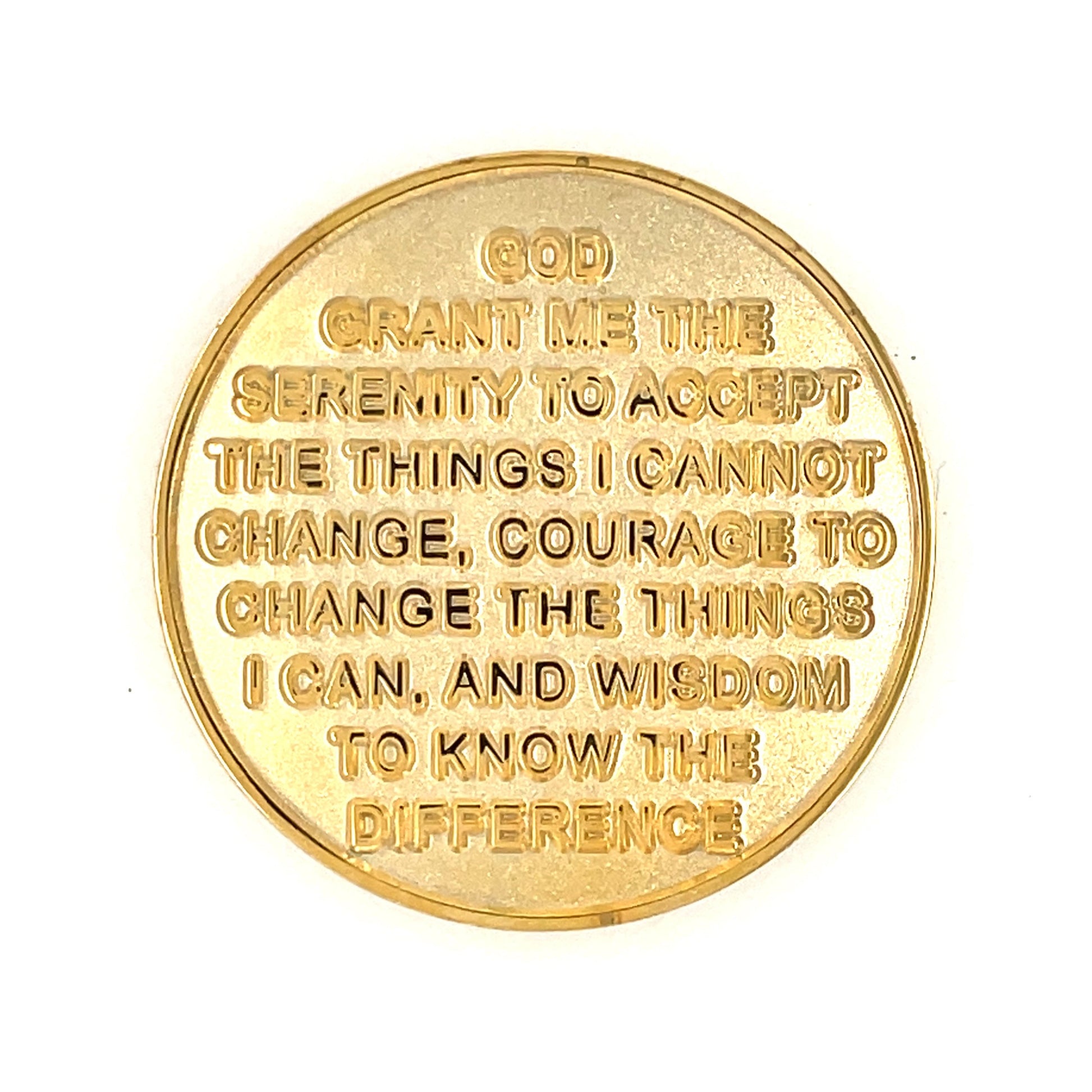 On the Front: To thine own self be true, Unity, Service, Recovery and the anniversary year in roman numerals.