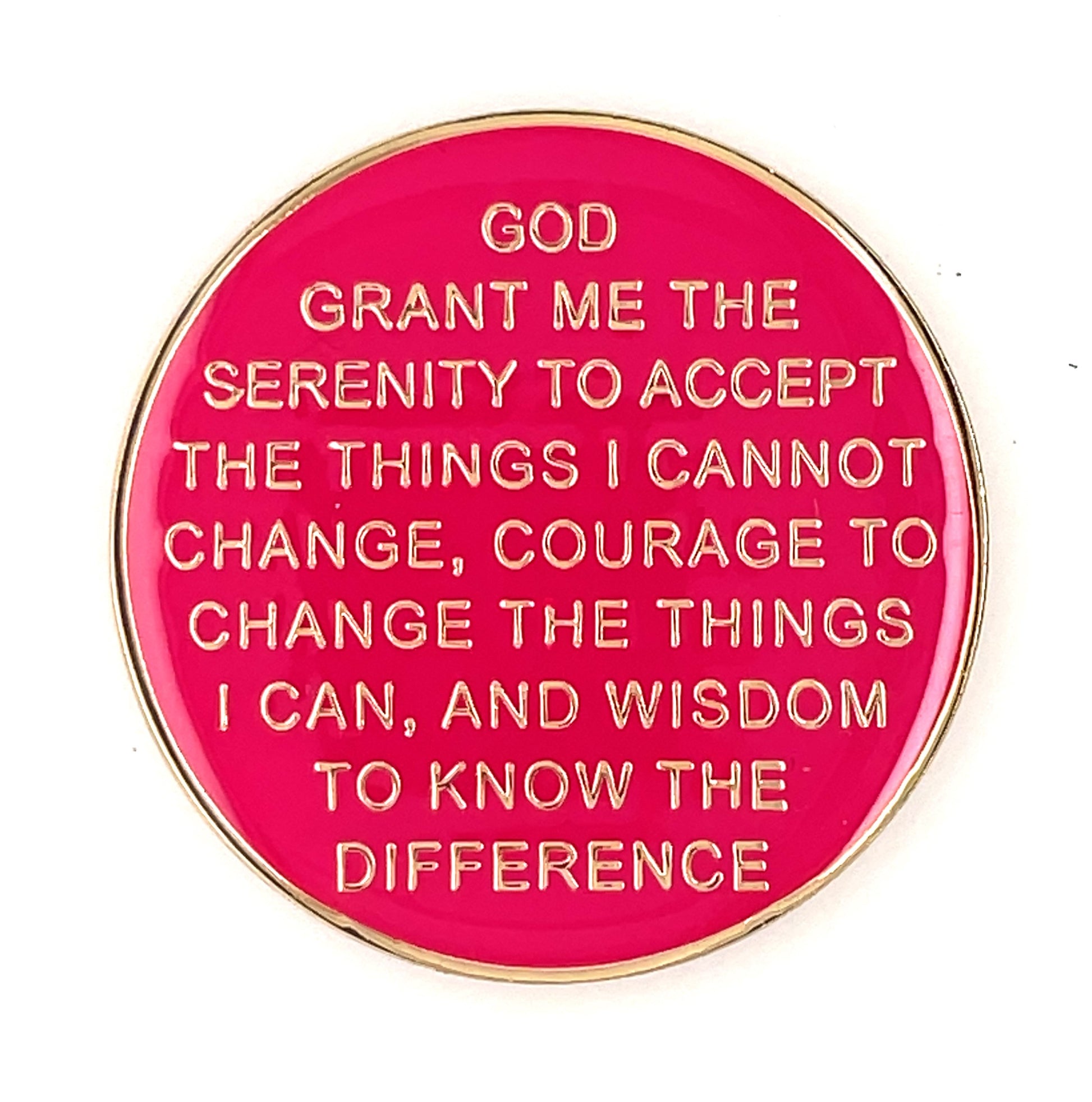 On the Front: To thine own self be true, Unity, Service, Recovery and the anniversary year in roman numerals.