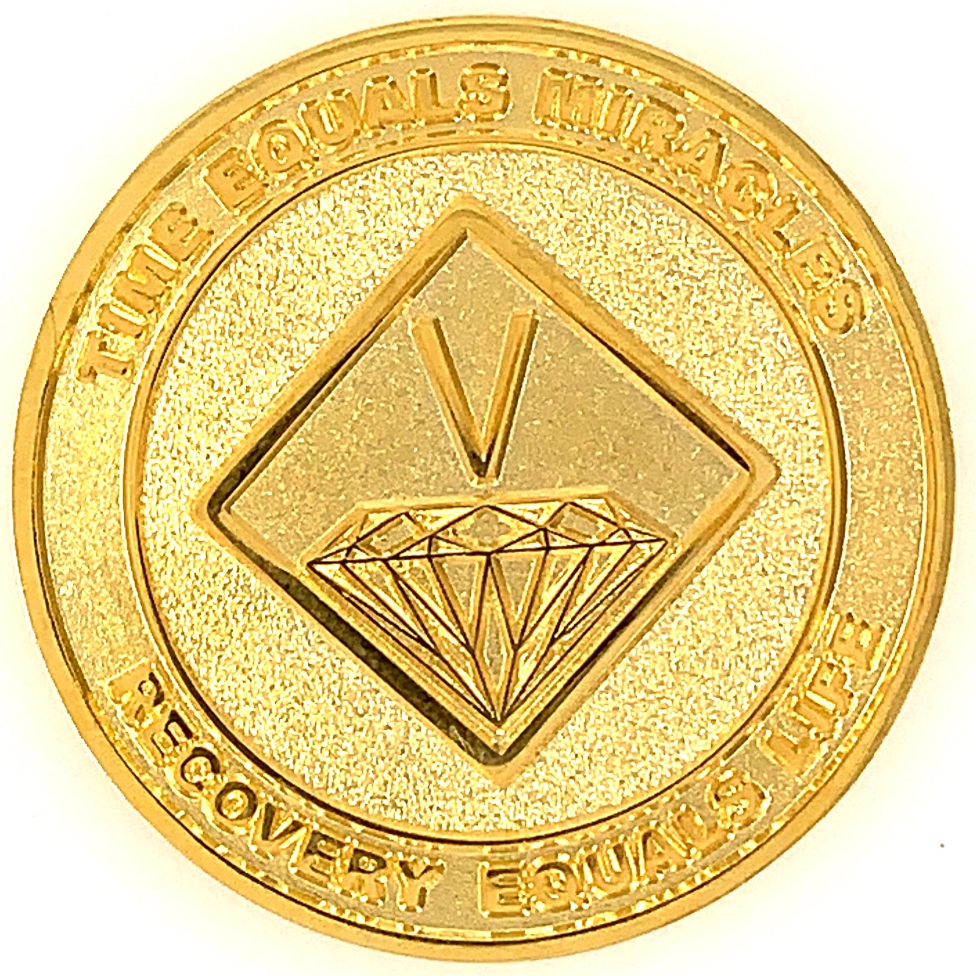 On the Front: Time equals miracles, Recovery equals life, and the anniversary year in roman numerals.