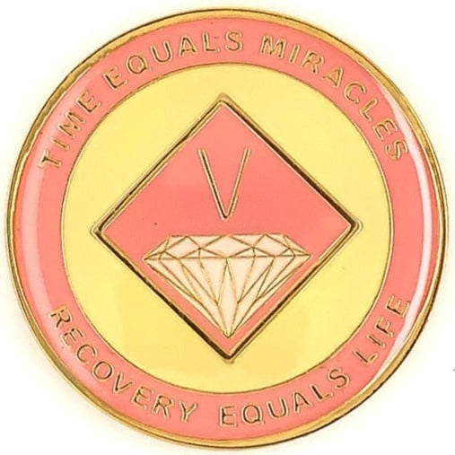 On the Front: Time equals miracles, Recovery equals life, and the anniversary year in roman numerals.
